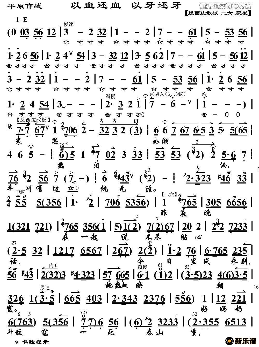 以血还血 以牙还牙(《平原作战》选段、琴谱)/ 平原作战 相关曲谱