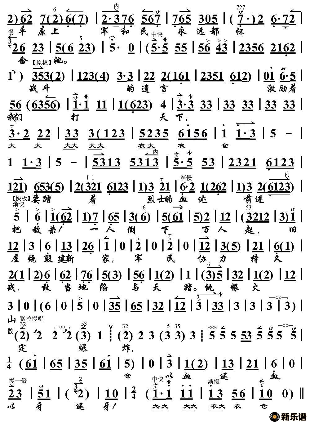 演唱的以血还血 以牙还牙(《平原作战》选段、琴谱)歌词,以血还血 以牙还牙(《平原作战》选段、琴谱)简谱.