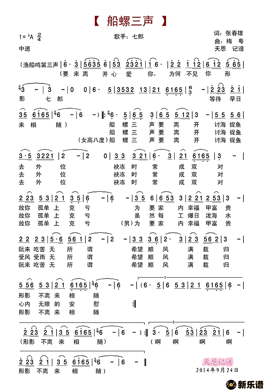 七郎演唱的船螺三声歌词,船螺三声简谱.
