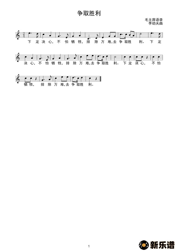演唱的争取胜利(线谱)歌词,争取胜利(线谱)简谱.