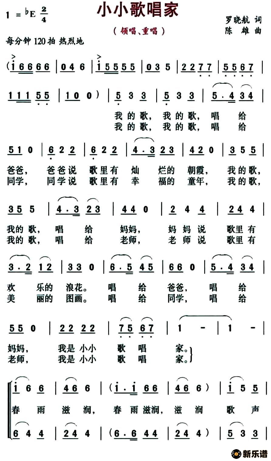 演唱的小小歌唱家(罗晓航词 陈雄曲、二声部版)歌词,小小歌唱家(罗晓航词 陈雄曲、二声部版)简谱.