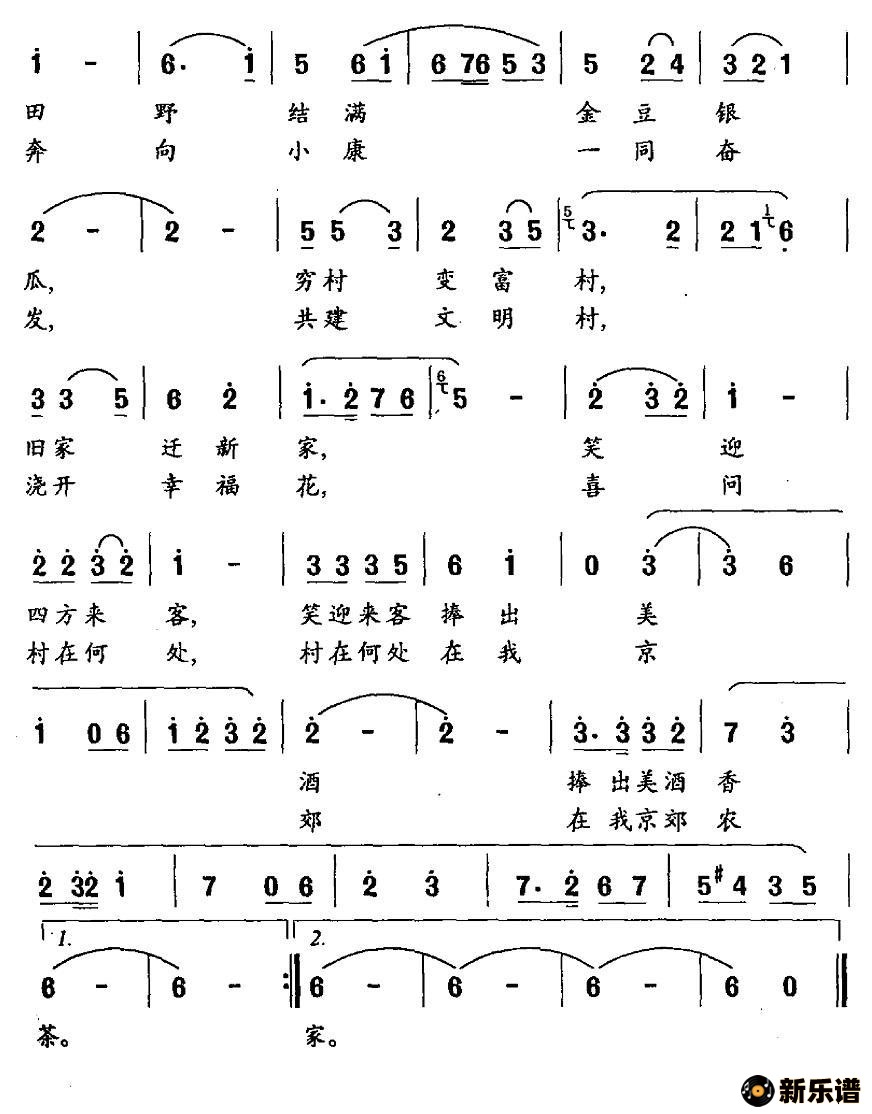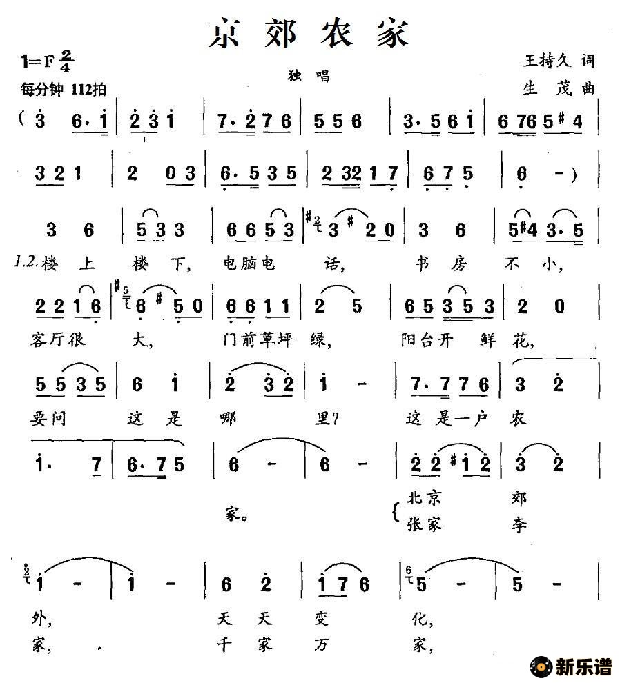 演唱的京郊农家歌词,京郊农家简谱.