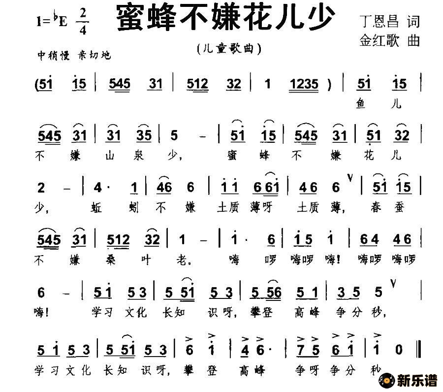 演唱的蜜蜂不嫌花儿少歌词,蜜蜂不嫌花儿少简谱.