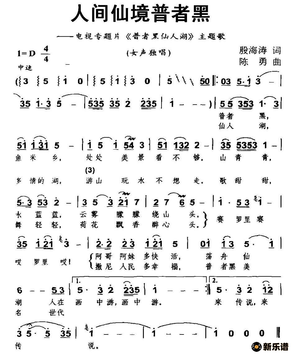 演唱的人间仙境普者黑歌词,人间仙境普者黑简谱.