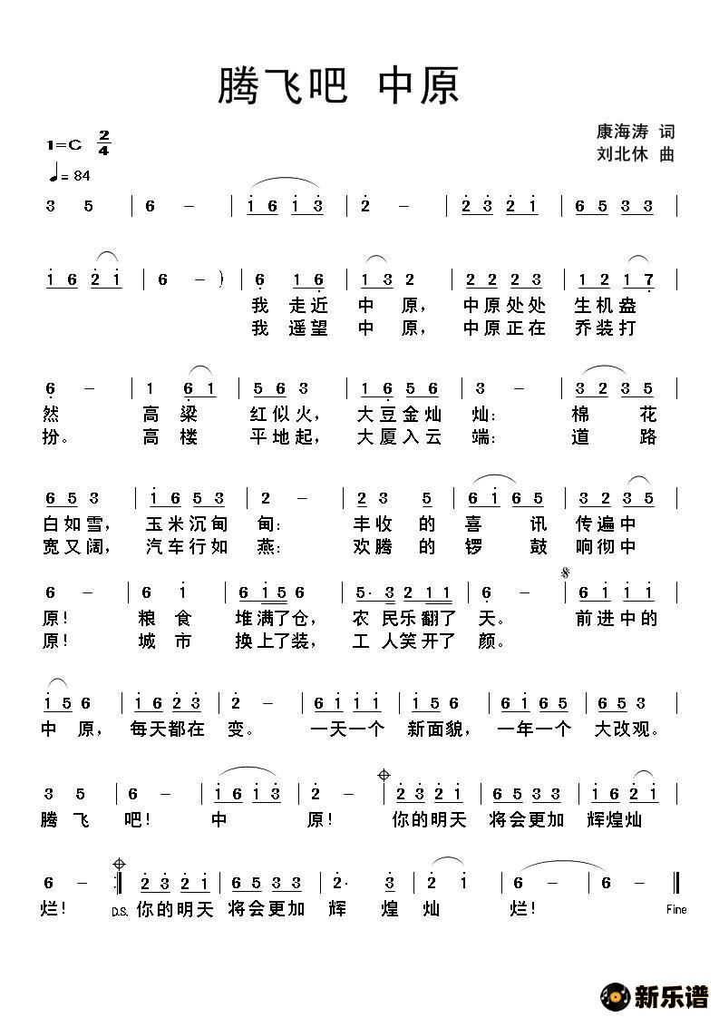 > 腾飞吧中原简谱