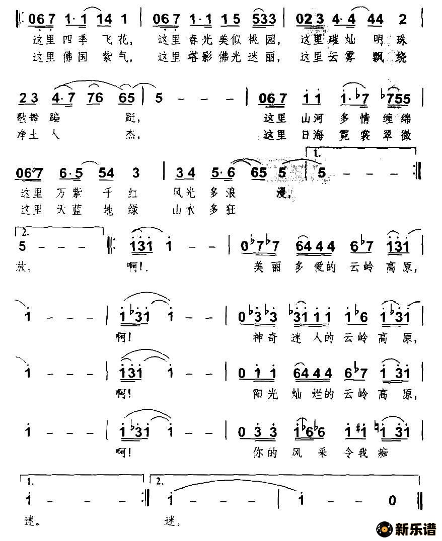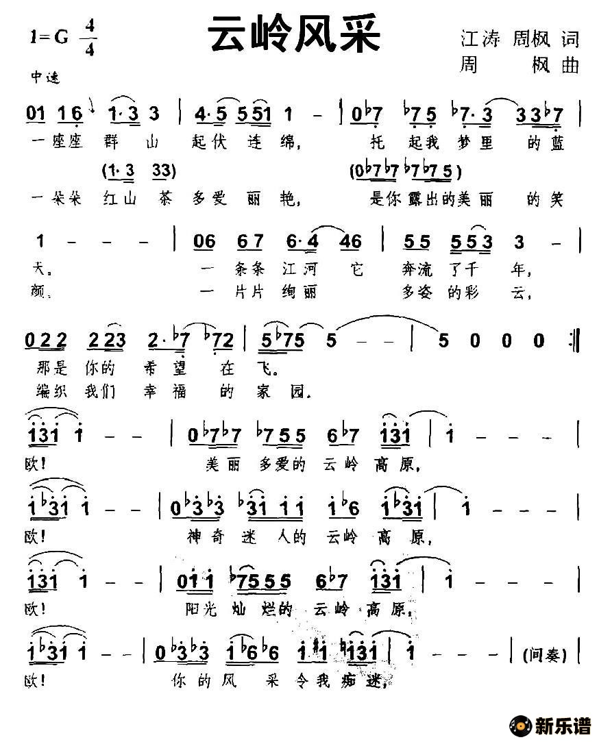 演唱的云岭风采歌词,云岭风采简谱.