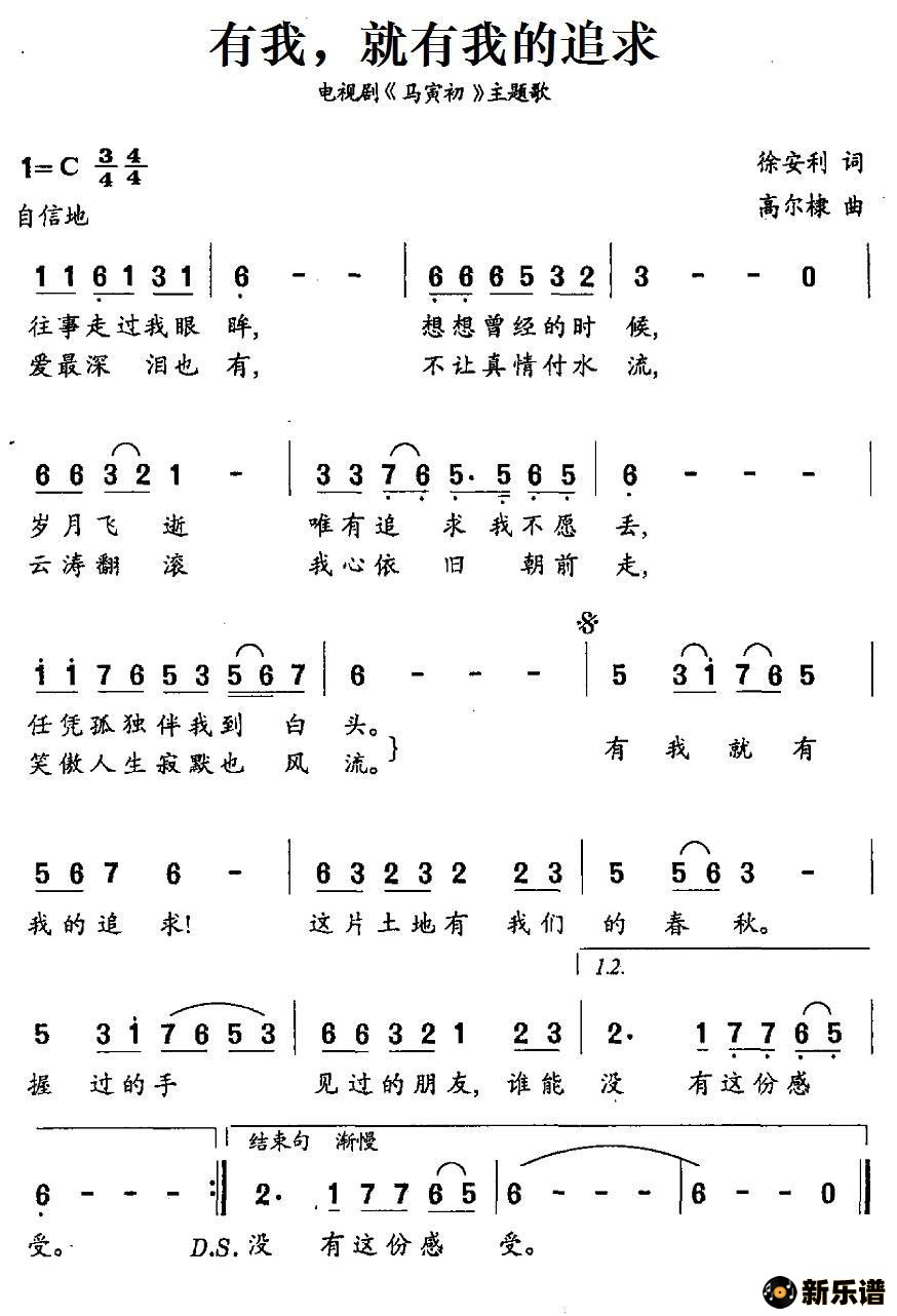 有我,就有我的追求(电视剧《马寅初》主题歌)/ 马寅初 相关曲谱