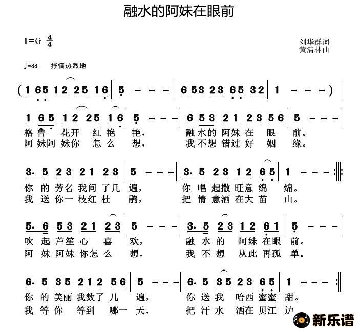 演唱的融水的阿妹在眼前歌词,融水的阿妹在眼前简谱.