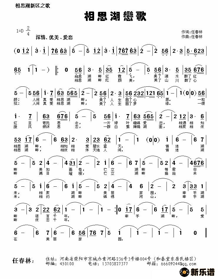 演唱的相思湖恋歌(任春林 词曲)歌词,相思湖恋歌(任春林 词曲)简谱.