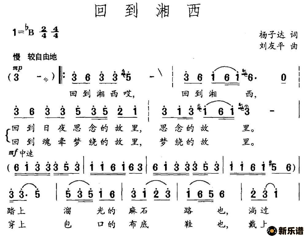 演唱的回到湘西(杨子达词 刘友平曲)歌词,回到湘西(杨子达词 刘友平曲)简谱.