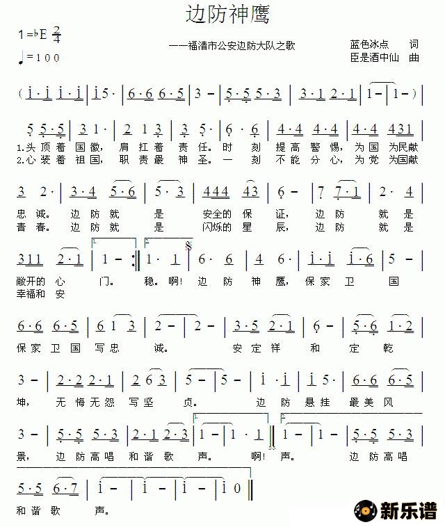演唱的边防神鹰歌词,边防神鹰简谱.