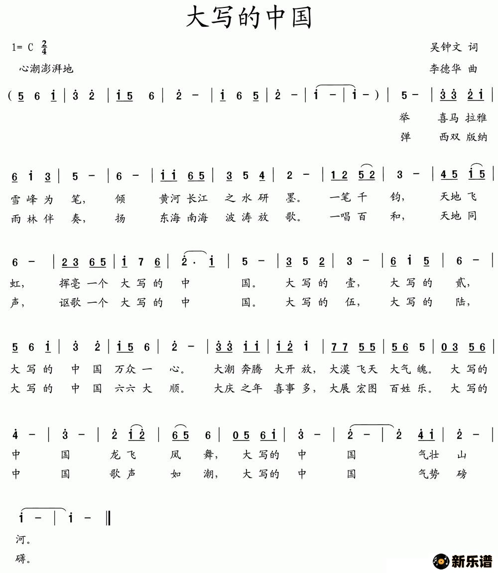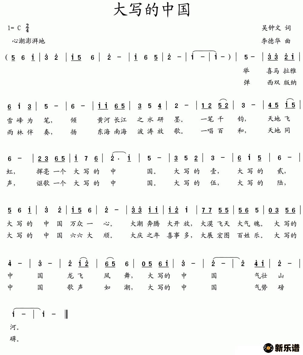 演唱的大写的中国(吴钟文词 李德华曲)歌词,大写的中国(吴钟文词 李德华曲)简谱.