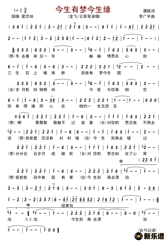 今生有梦今生缘/龙飞/云菲菲 相关曲谱