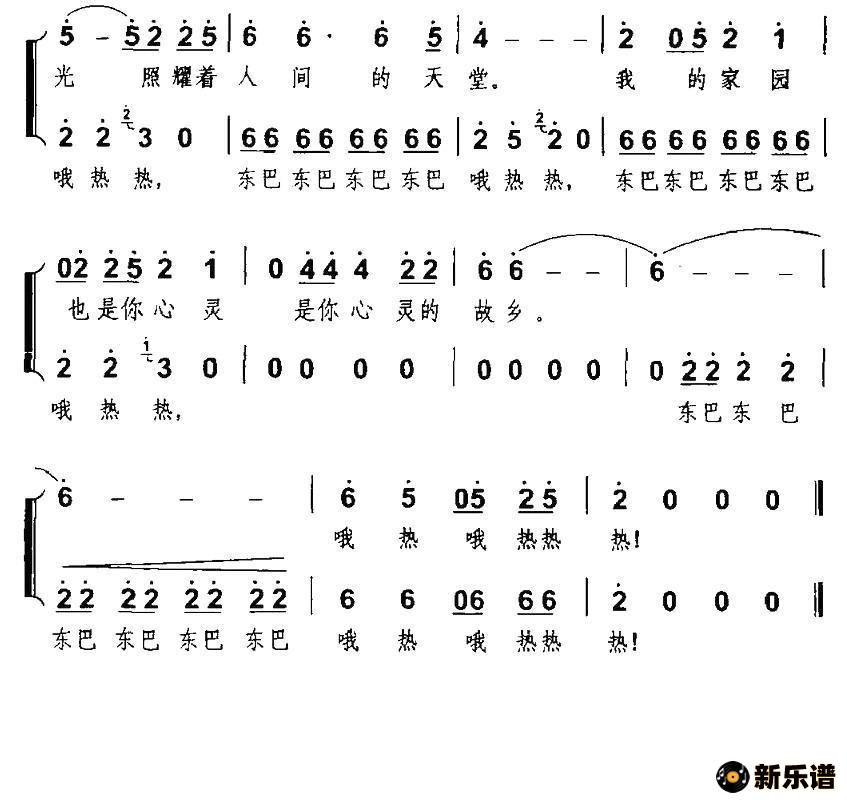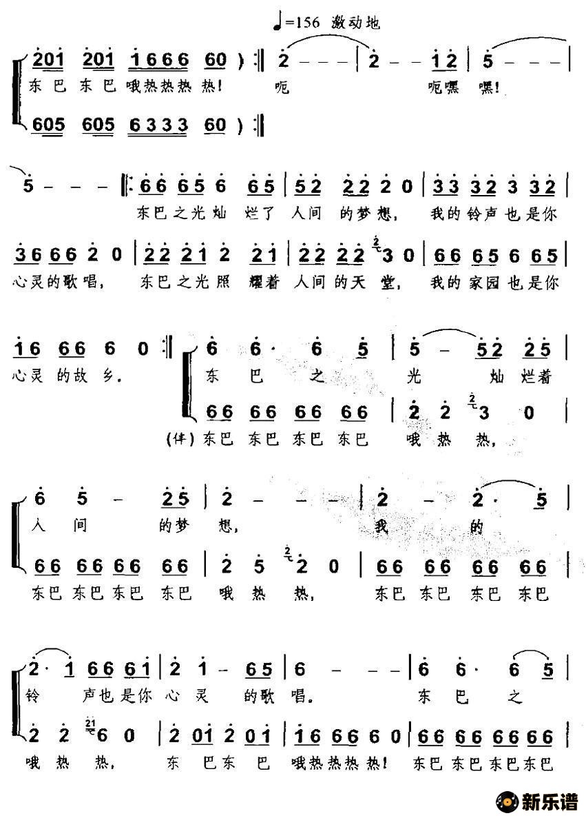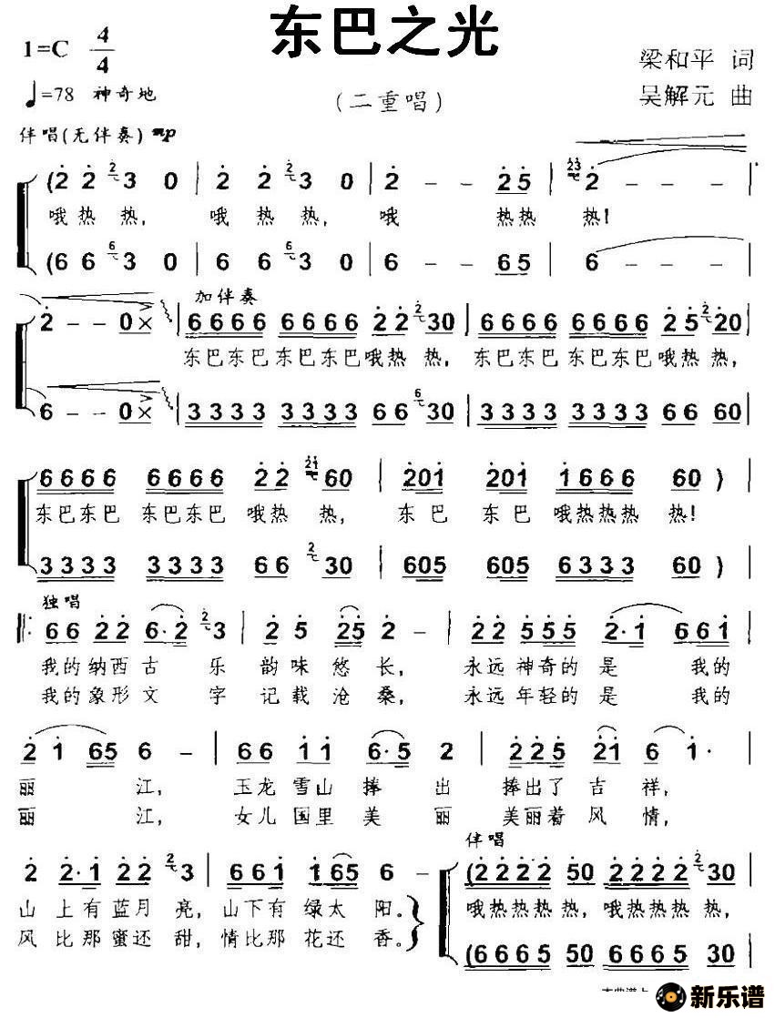 > 东巴之光(梁和平词 吴解元曲、二重唱)简谱
