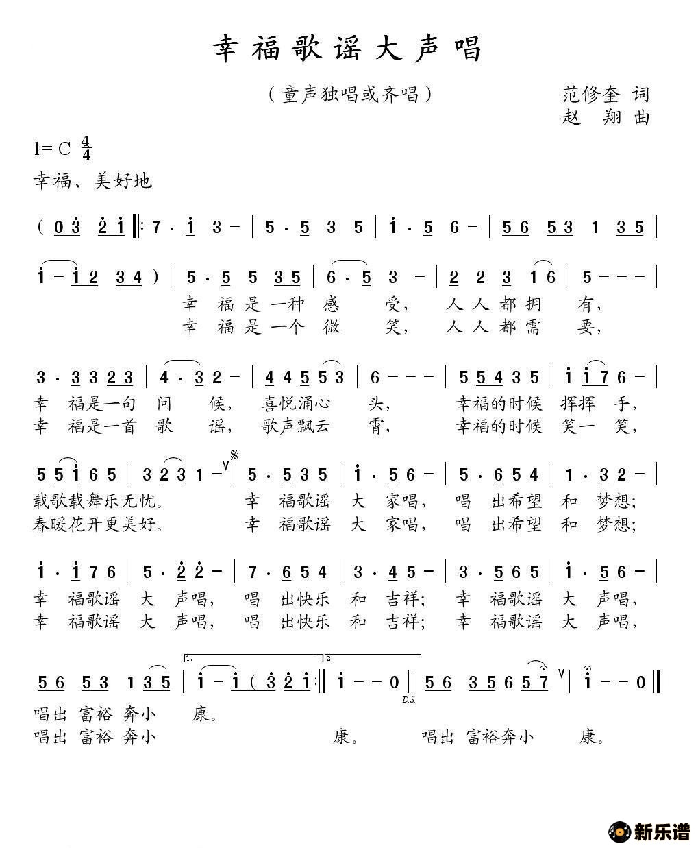 幸福歌谣大声唱(范修奎词 赵翔曲)/ 相关曲谱