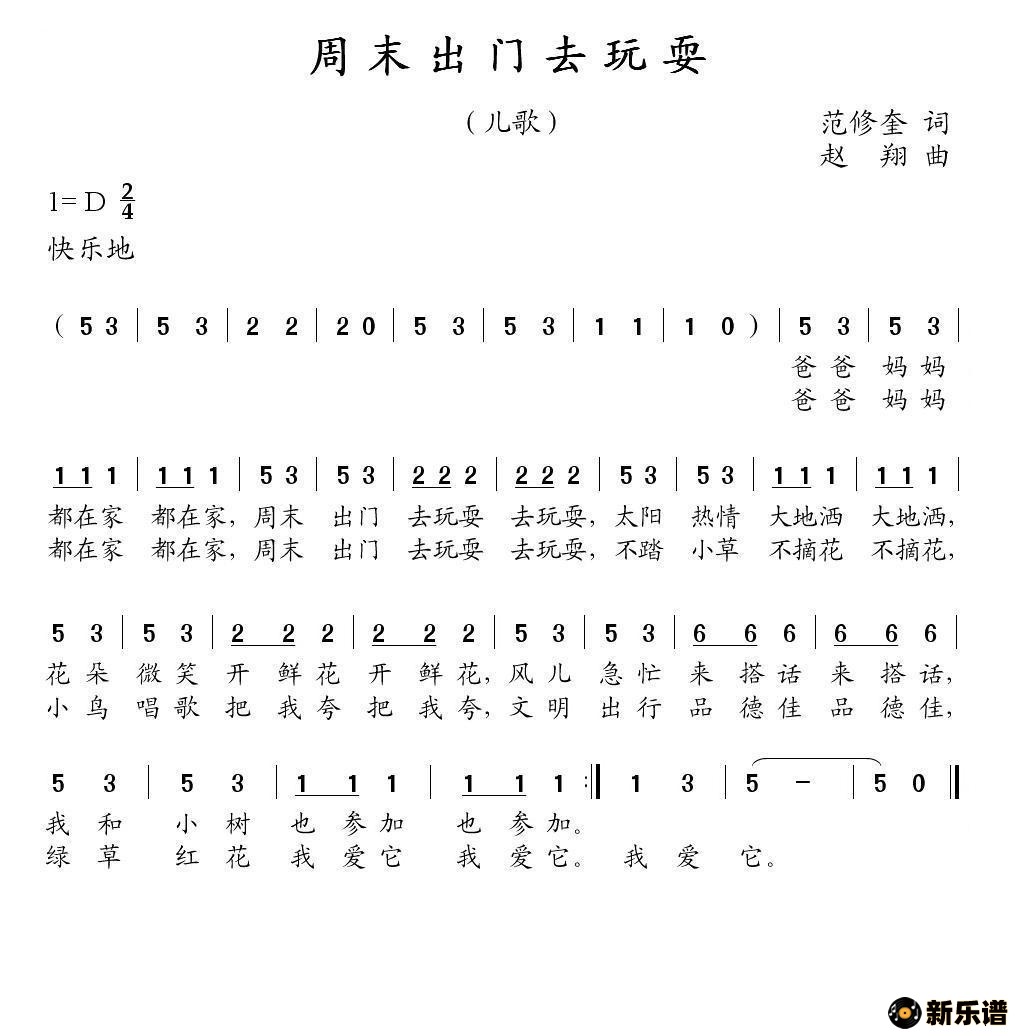 《周末出门去玩耍(范修奎词 赵翔曲)》简谱