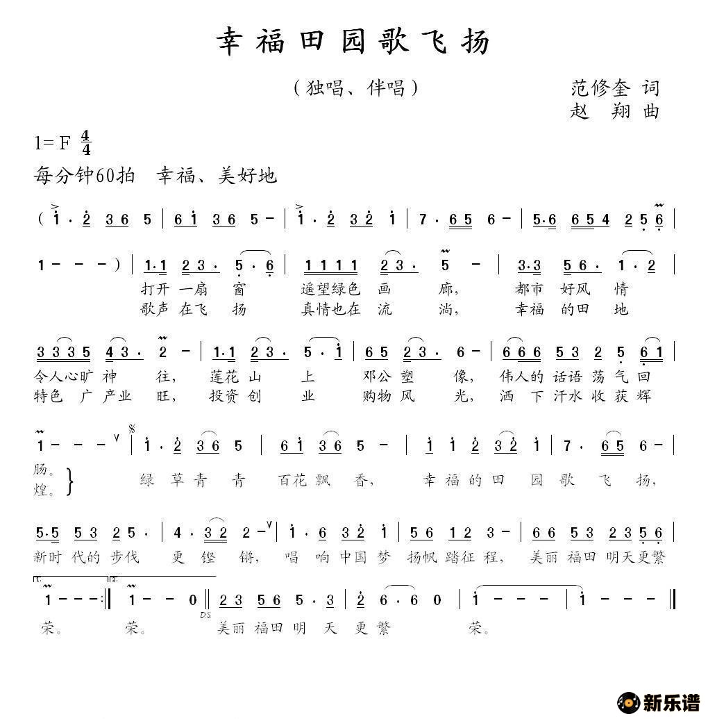 演唱的幸福田园歌飞扬(范修奎词 赵翔曲)歌词,幸福田园歌飞扬(范修奎词 赵翔曲)简谱.
