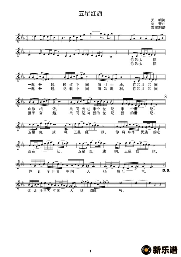 演唱的五星红旗(线谱)歌词,五星红旗(线谱)简谱.