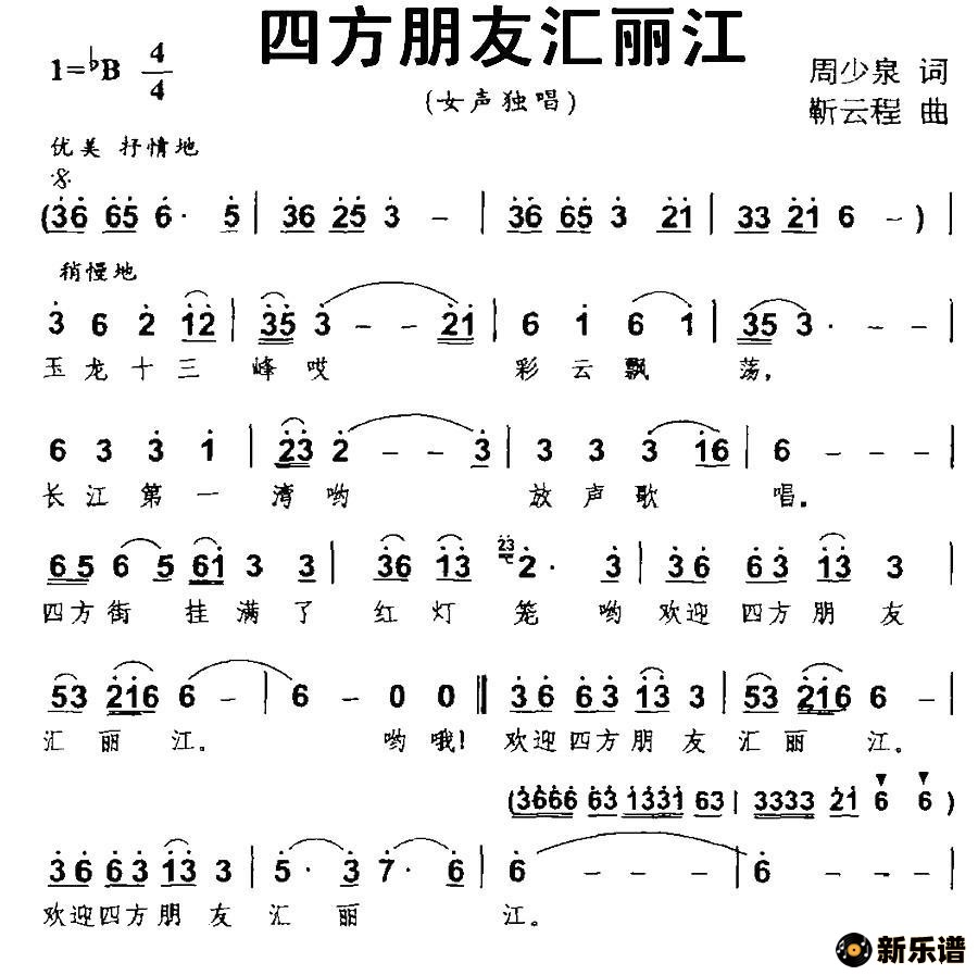 演唱的四方朋友汇丽江歌词,四方朋友汇丽江简谱.