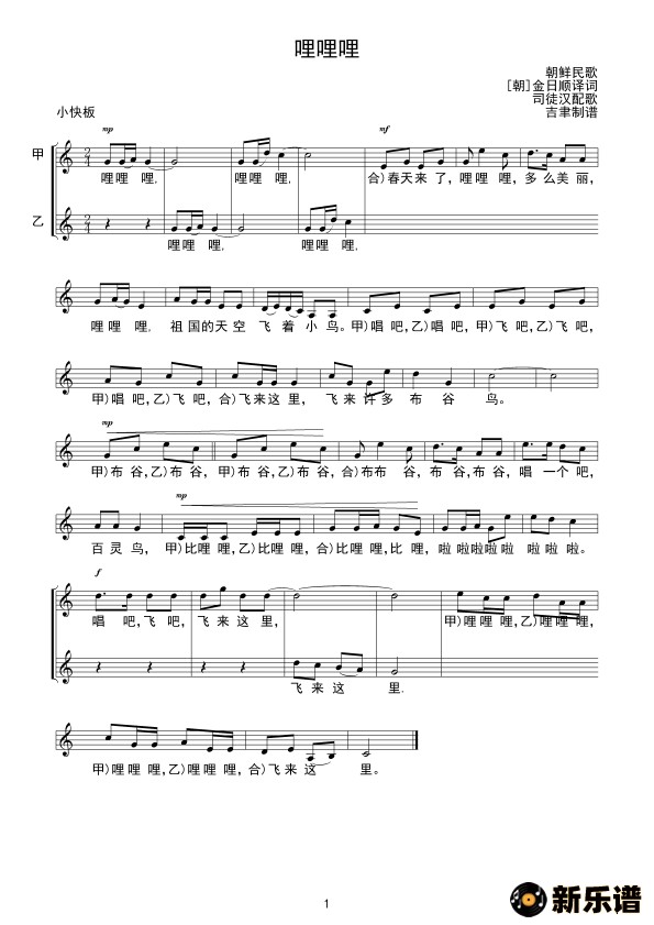 演唱的哩哩哩(线谱)歌词,哩哩哩(线谱)简谱.