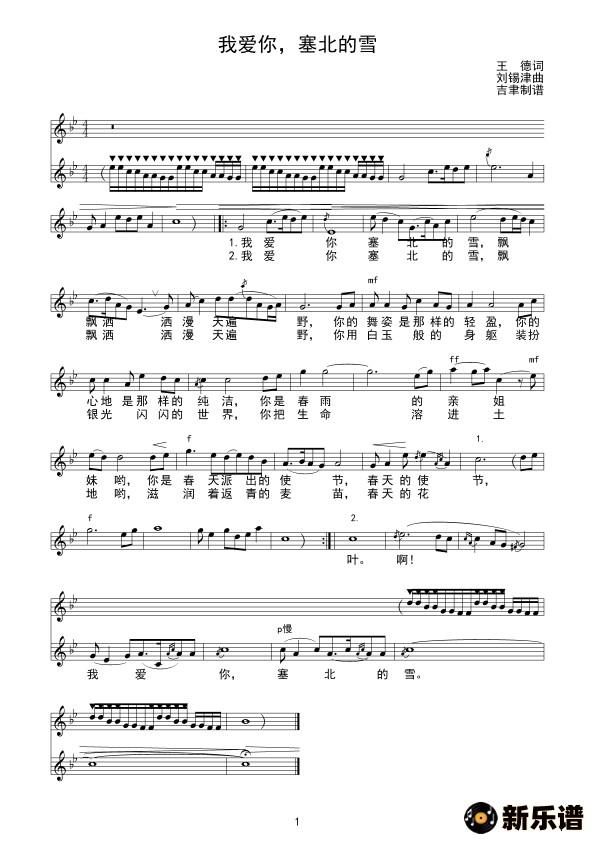 我爱你,塞北的雪(线谱)