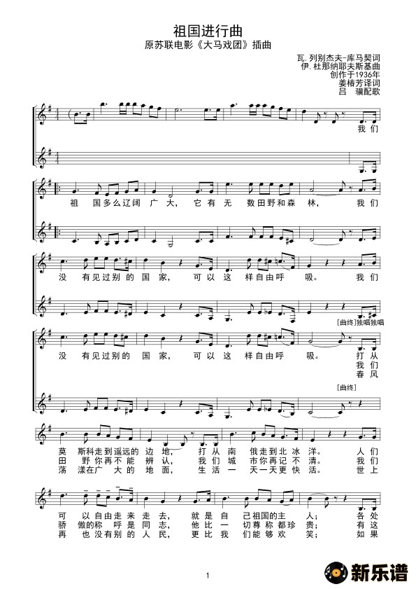 演唱的祖国进行曲(线谱)歌词,祖国进行曲(线谱)简谱.