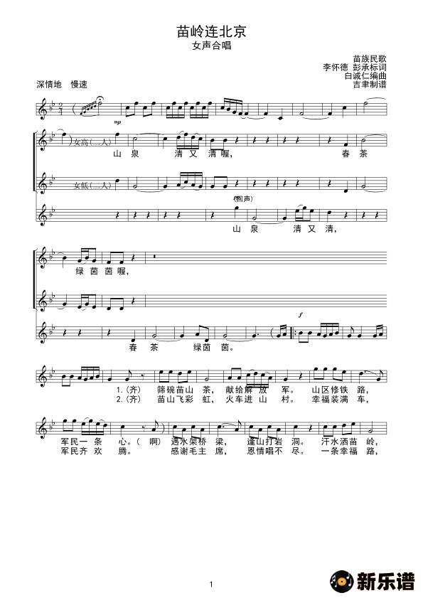 演唱的苗岭连北京(线谱)歌词,苗岭连北京(线谱)简谱.