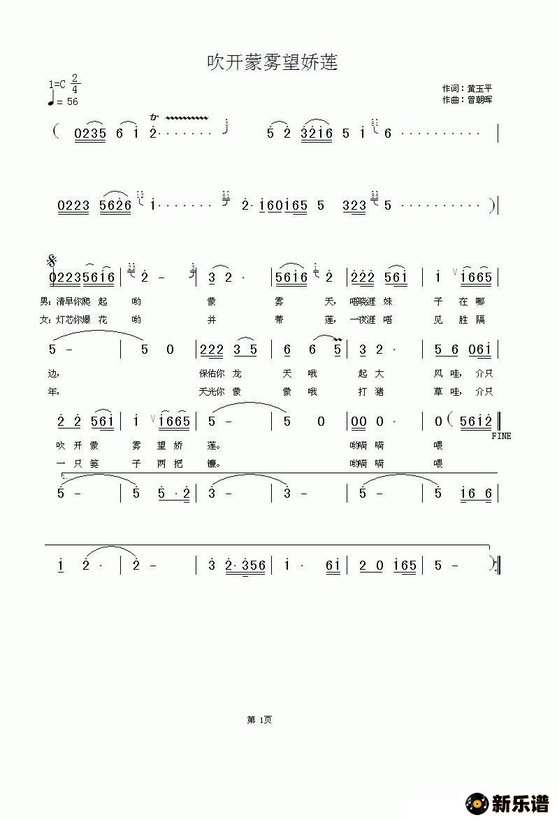 吹开蒙雾望娇莲(客家南康方言歌曲)/ 相关曲谱