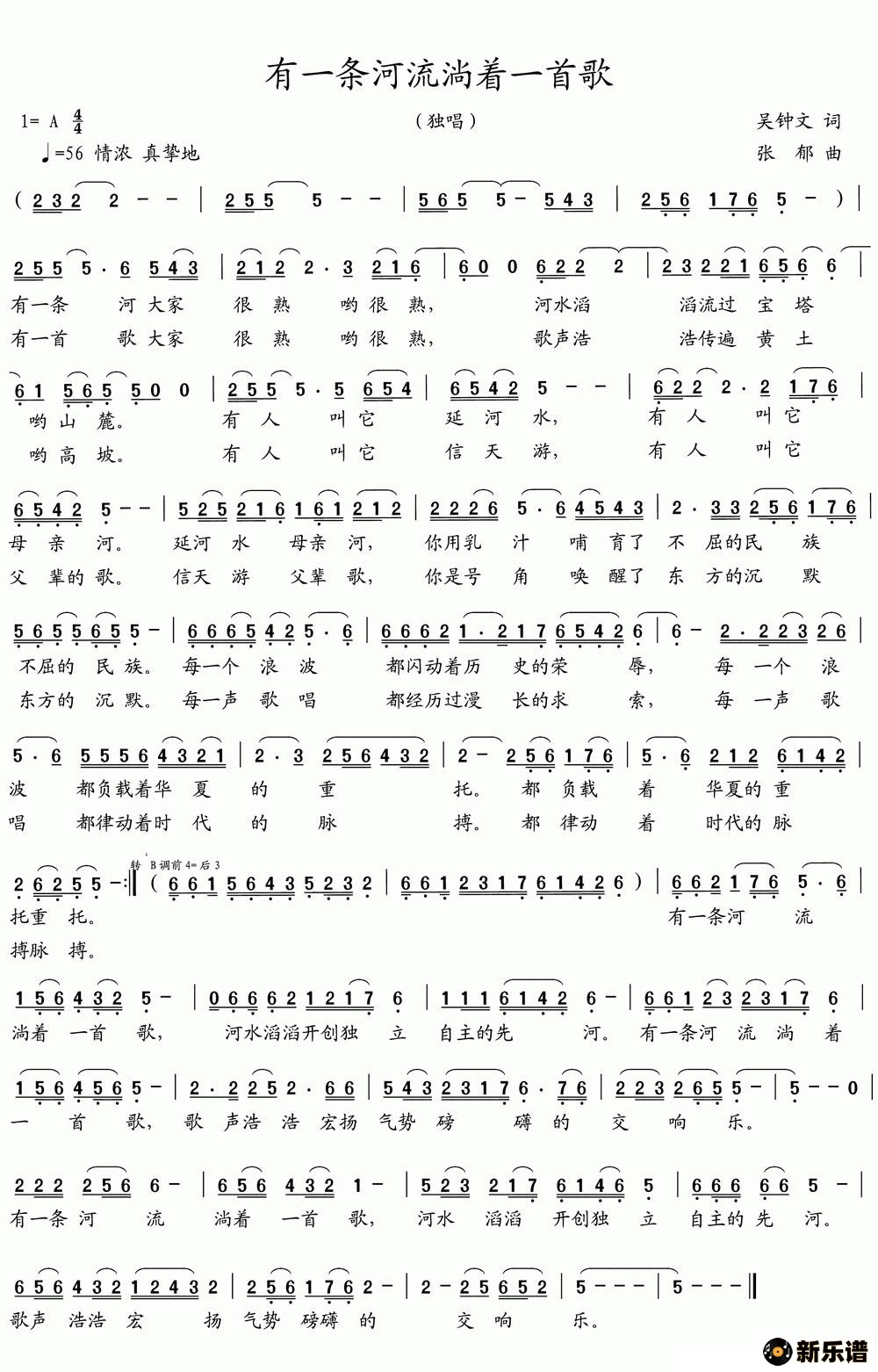 演唱的有一条河流淌着一首歌(吴钟文词 张郁曲)歌词,有一条河流淌着一首歌(吴钟文词 张郁曲)简谱.