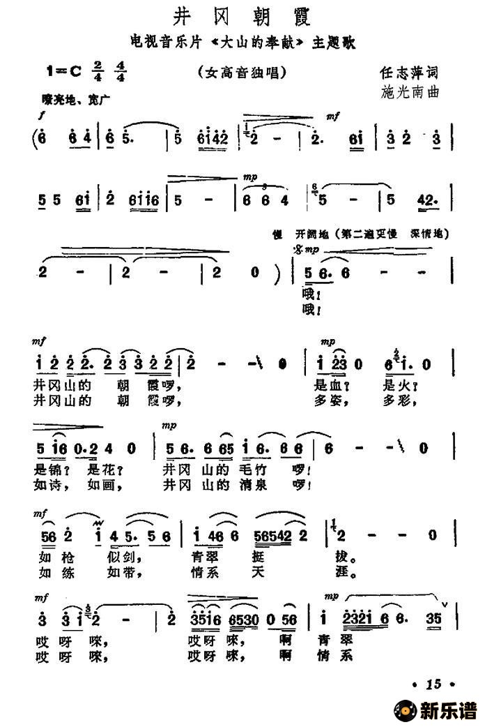 演唱的井冈朝霞(电视音乐片《大山的奉献》主题歌)歌词,井冈朝霞(电视音乐片《大山的奉献》主题歌)简谱.