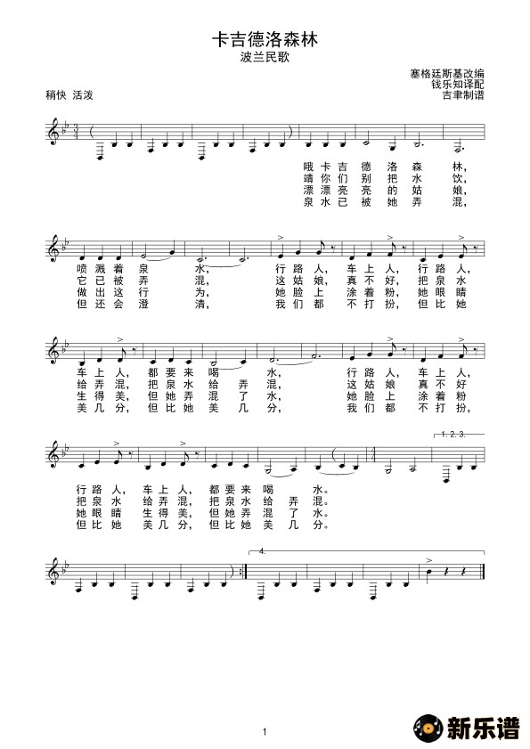 演唱的卡吉德洛森林(线谱)歌词,卡吉德洛森林(线谱)简谱.