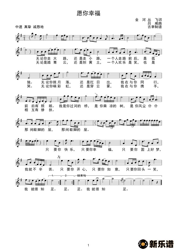 演唱的愿你幸福(线谱)歌词,愿你幸福(线谱)简谱.