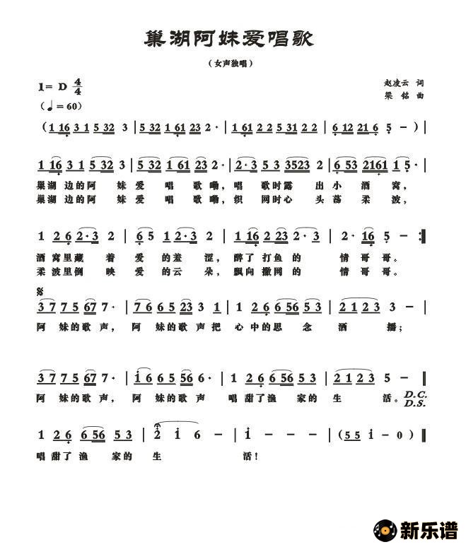 演唱的巢湖阿妹爱唱歌歌词,巢湖阿妹爱唱歌简谱.