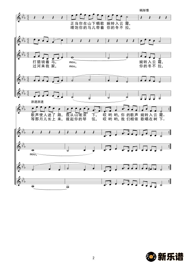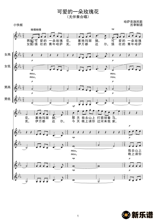 可爱的一朵玫瑰花(无伴奏合唱)线 谱