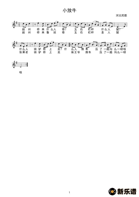 演唱的小放牛(线谱)歌词,小放牛(线谱)简谱.
