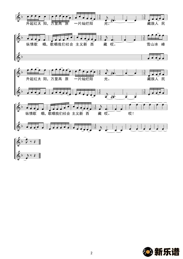 歌唱我们的新西藏(线谱)
