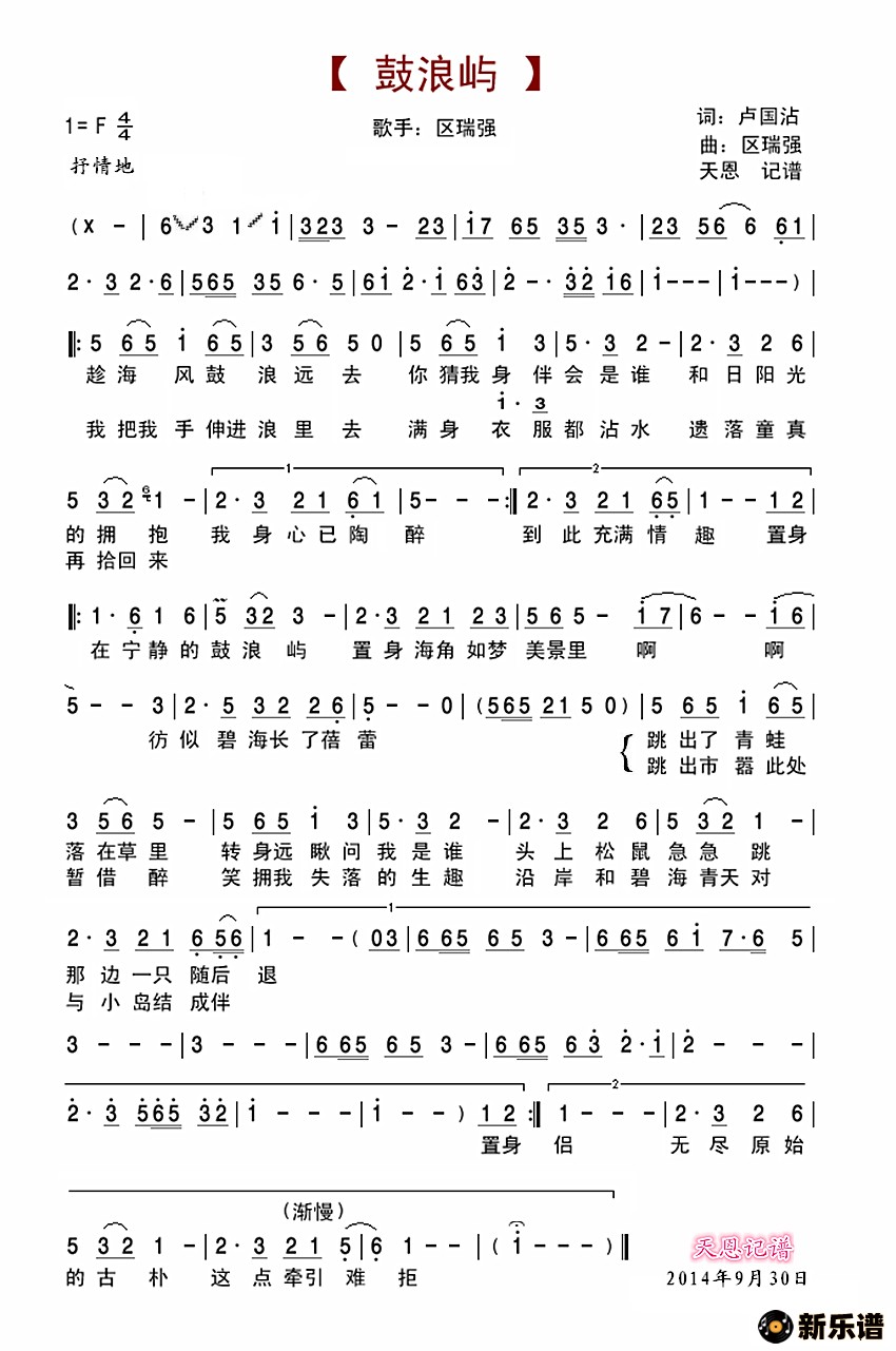 鼓浪屿-F调演唱版/区瑞强 相关曲谱