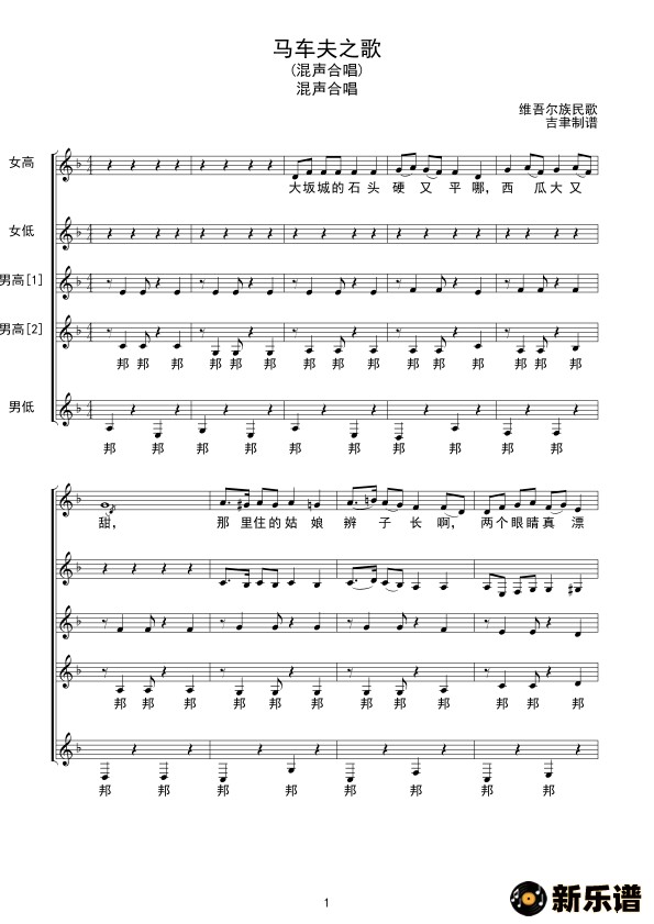 马车夫之歌(线谱)