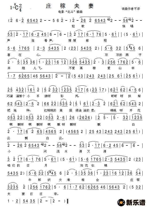 黄中秋李元华演唱的庄稼夫妻歌词,庄稼夫妻简谱.