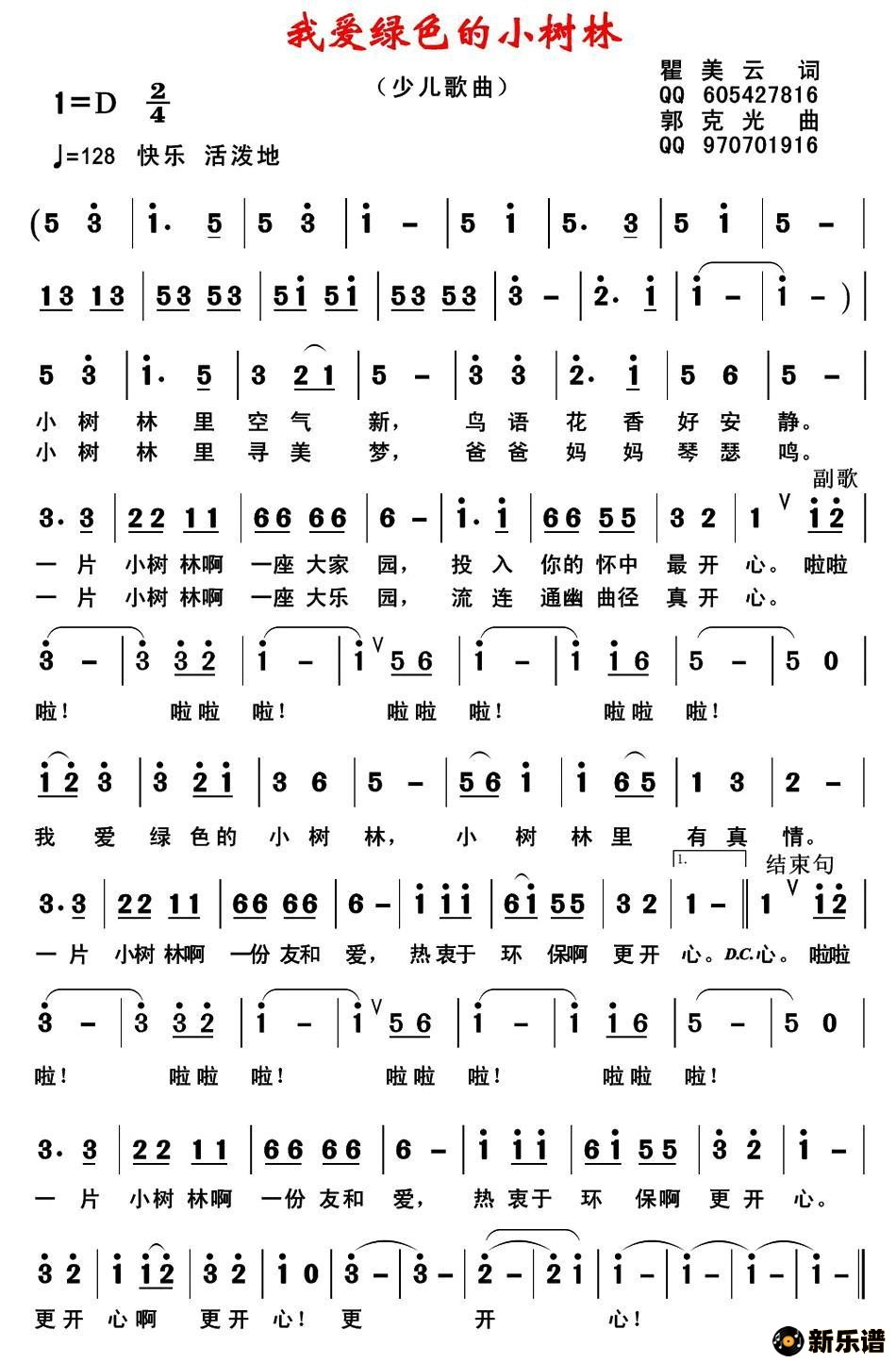 演唱的我爱绿色的小树林歌词,我爱绿色的小树林简谱.