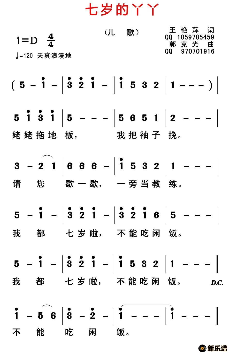 演唱的七岁的丫丫歌词,七岁的丫丫简谱.
