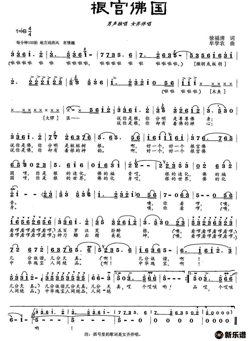 《根宫佛国》简谱