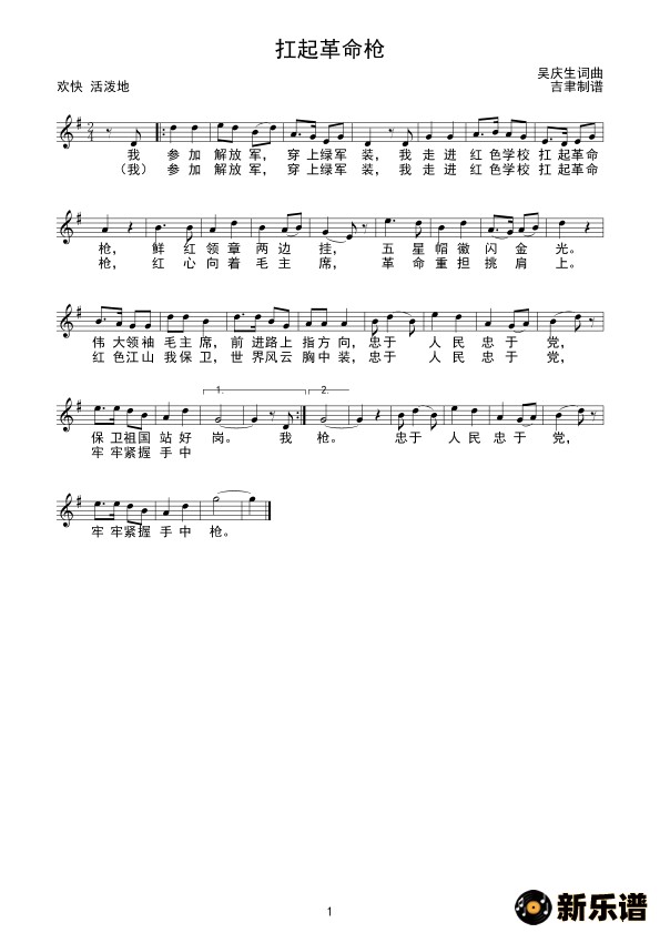 演唱的扛起革命枪(线谱)歌词,扛起革命枪(线谱)简谱.