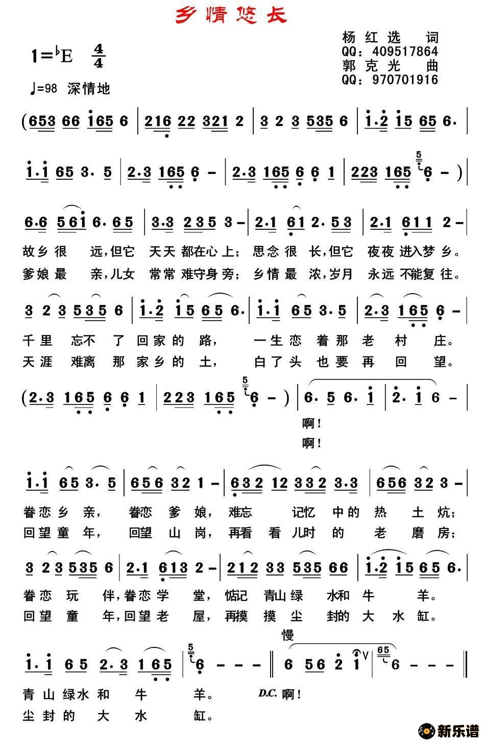 演唱的乡情悠长歌词,乡情悠长简谱.