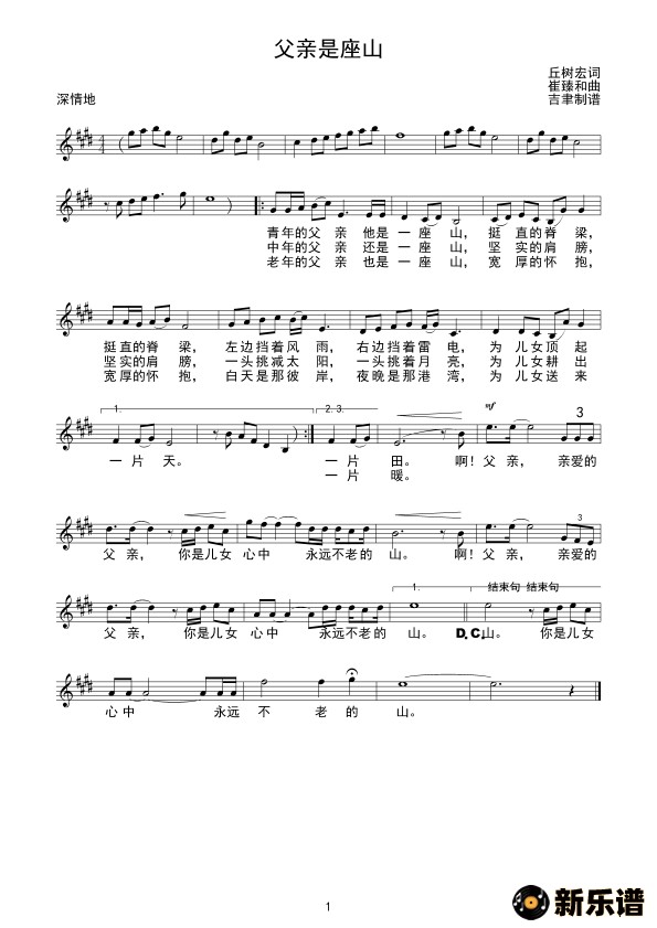 > 父亲是座山(线谱)简谱