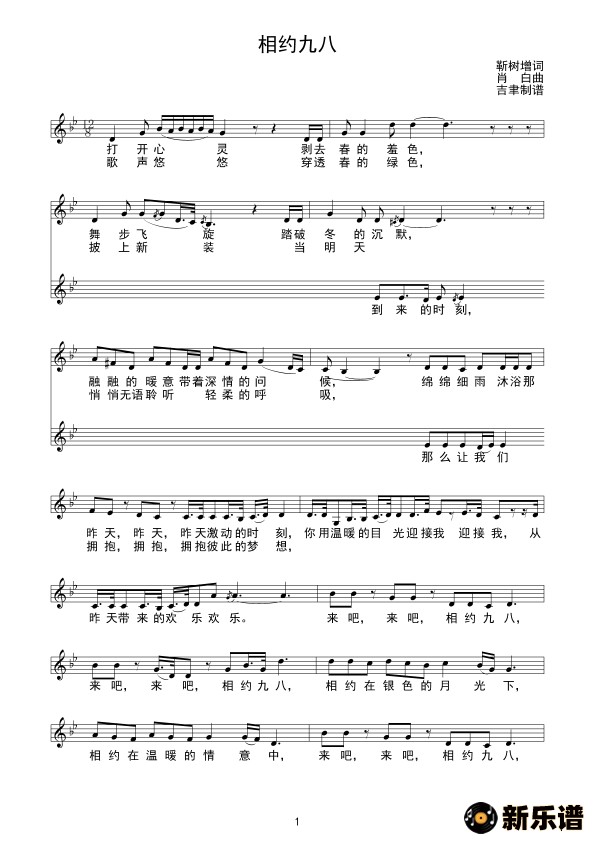 演唱的相约九八(线谱)歌词,相约九八(线谱)简谱.