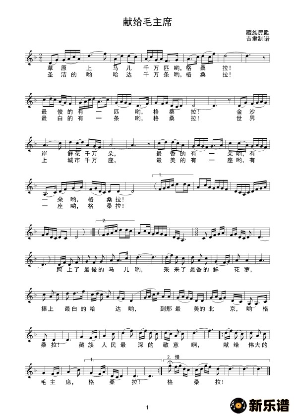 演唱的献给毛主席(线谱)歌词,献给毛主席(线谱)简谱.