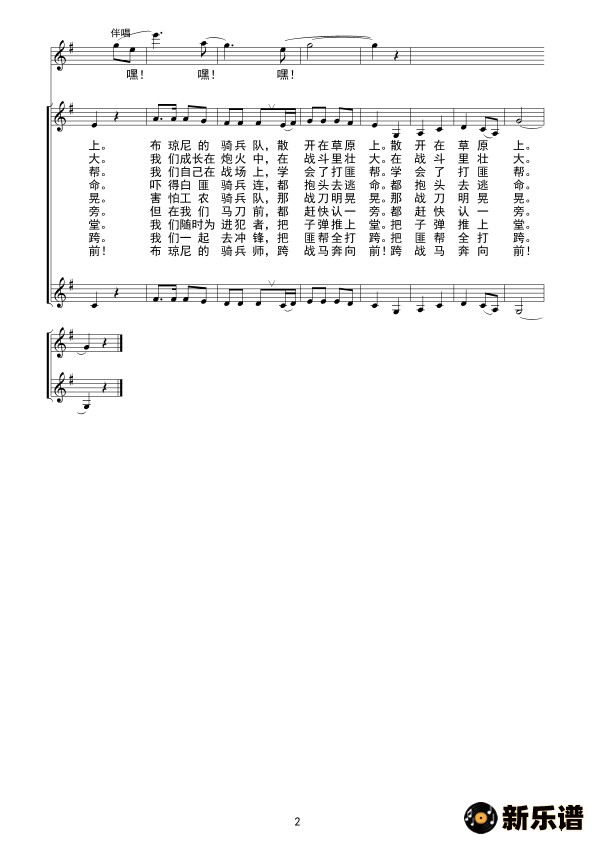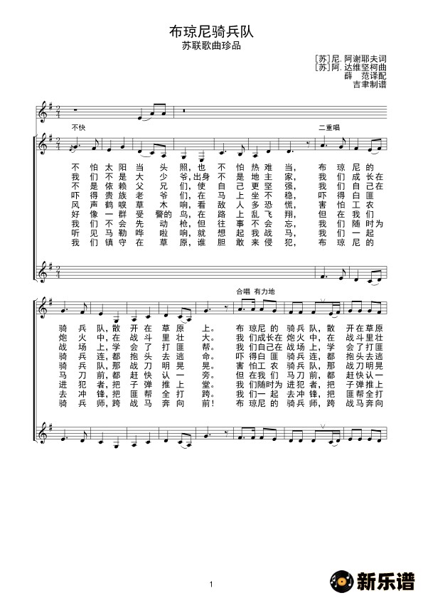 演唱的布琼尼骑兵队(线谱)歌词,布琼尼骑兵队(线谱)简谱.