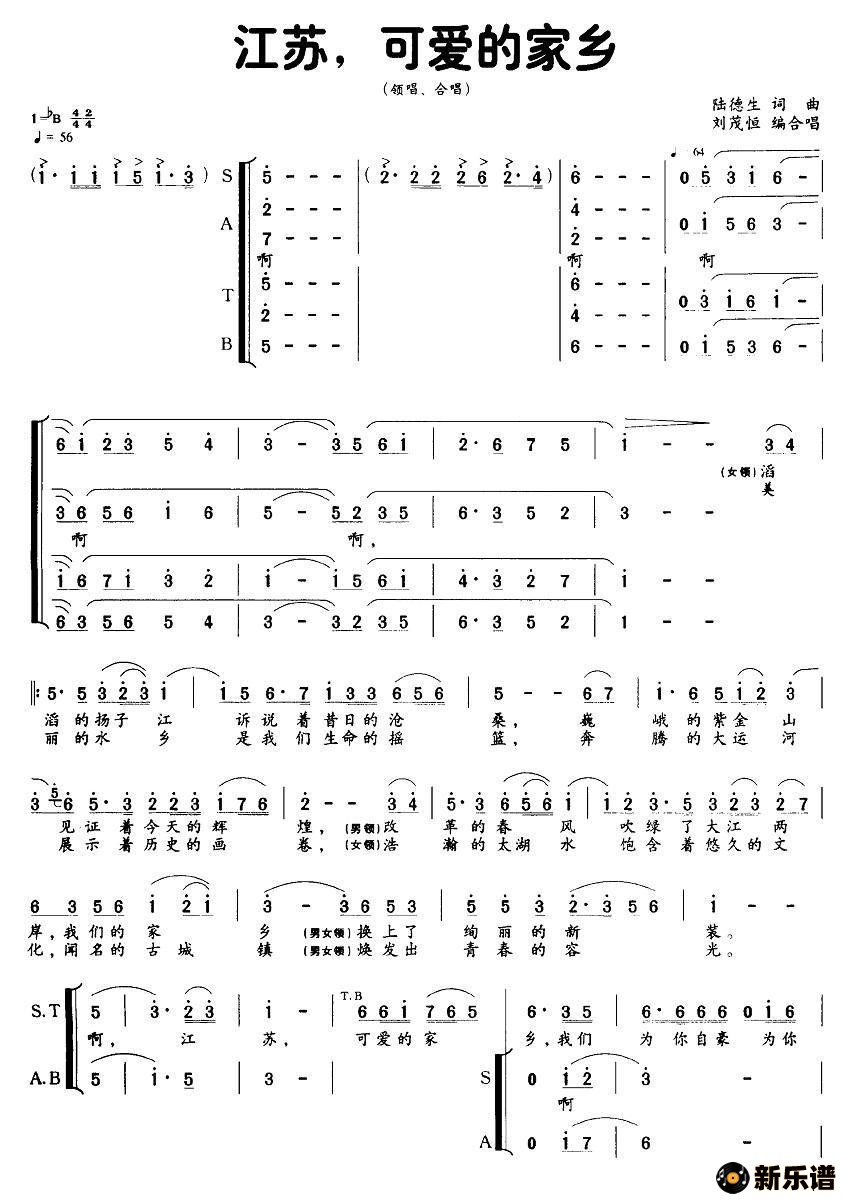 演唱的江苏,可爱的家乡歌词,江苏,可爱的家乡简谱.