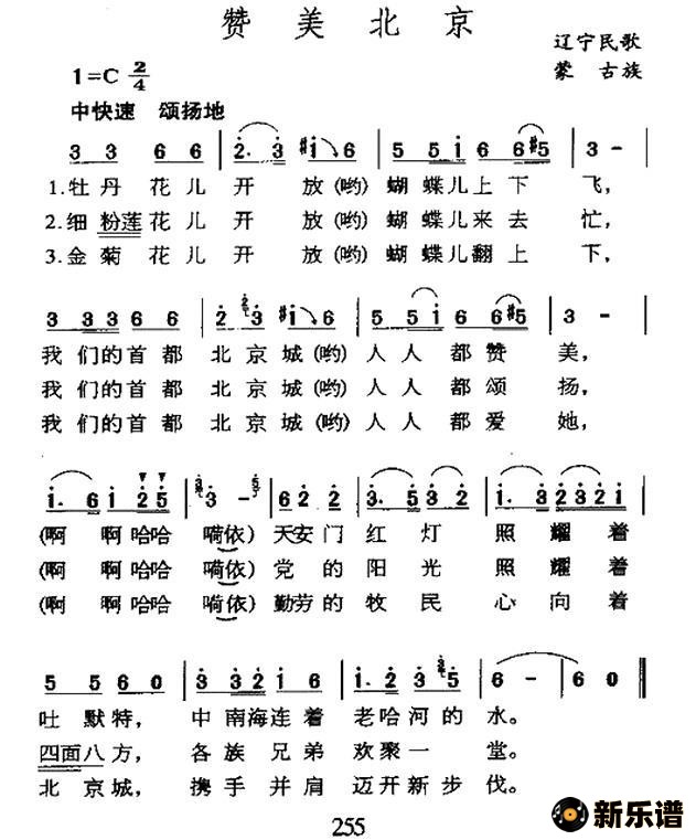 演唱的赞美北京辽宁蒙古族民歌歌词,赞美北京辽宁蒙古族民歌简谱.